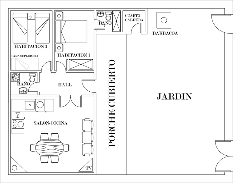 Habitación 1 (cama matrimonio) Habitación 2 (2 camas de 90)
